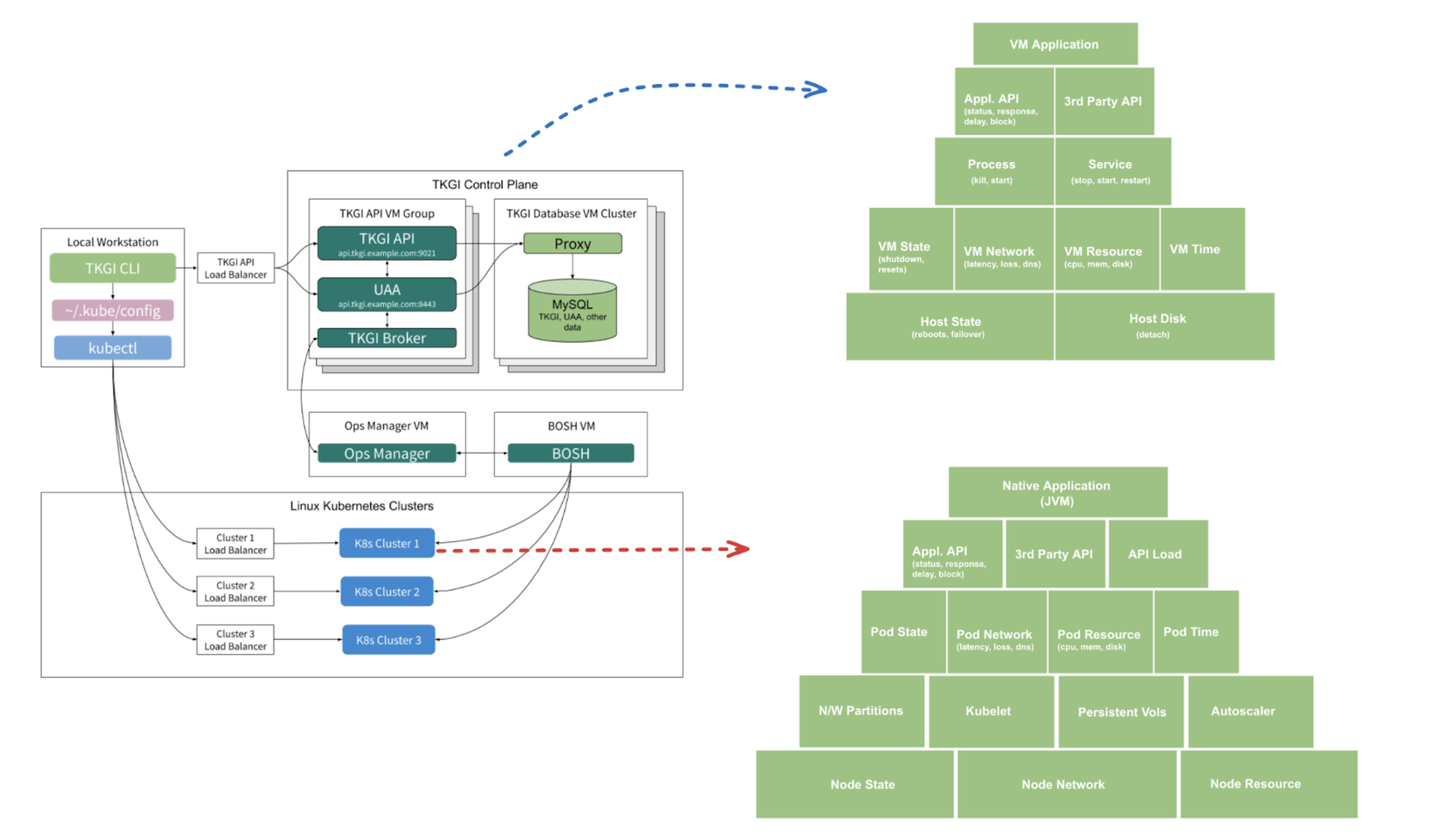 You can execute chaos experiments on various layers of your infrastructure to determine the resilience of your TKGi-based microservices. You can start from the application process layer (supported for JVM-based apps currently) and move down to the underlying host infrastructure.